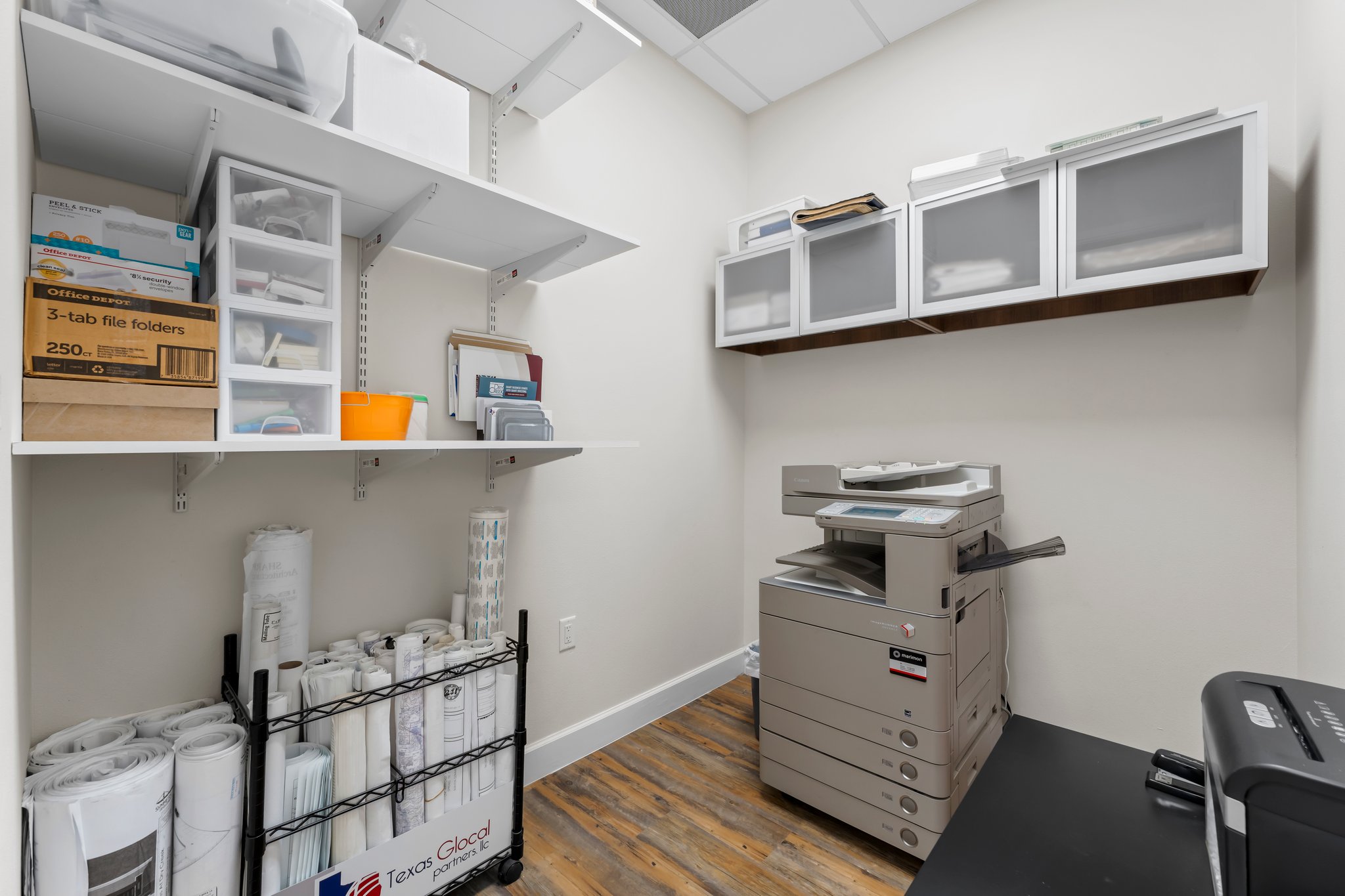 Several configurations are available that include reception area, multiple offices, conference space, storage, kitchen and restrooms.